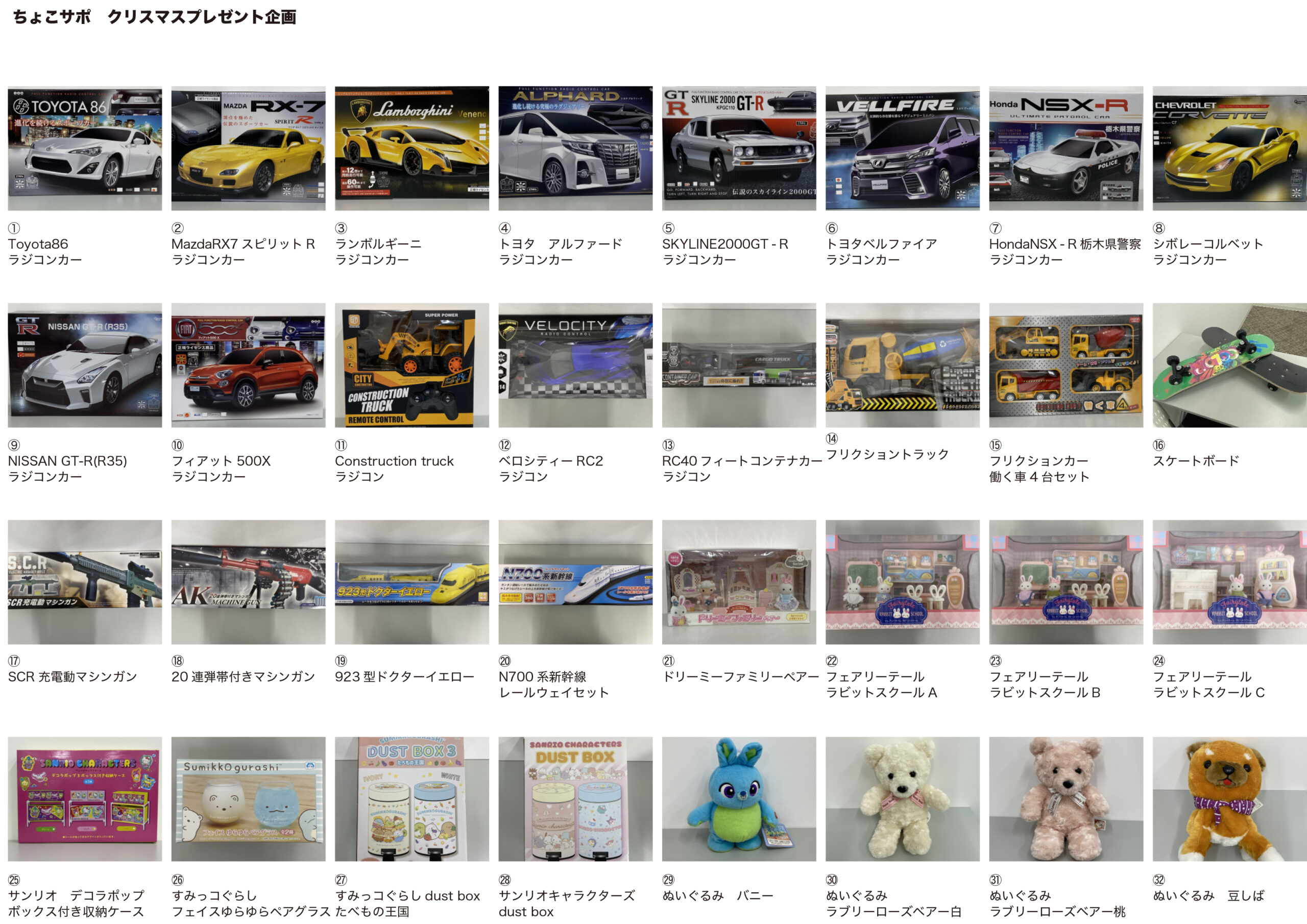 ちょこサポ クリスマスプレゼント商品一覧